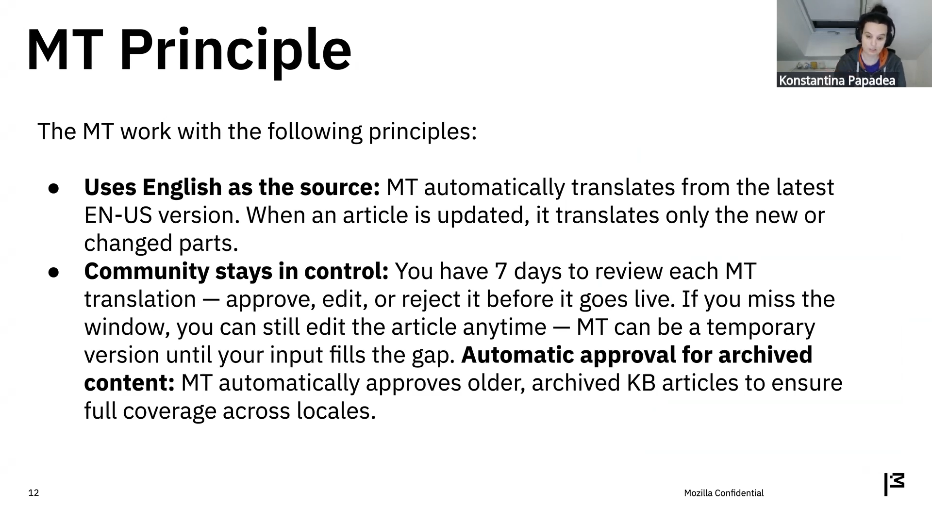 One of the first comments in the SUMO chat following the call from people who hadn’t watched it was whether it would be possible for specific locales to disable AI translation.